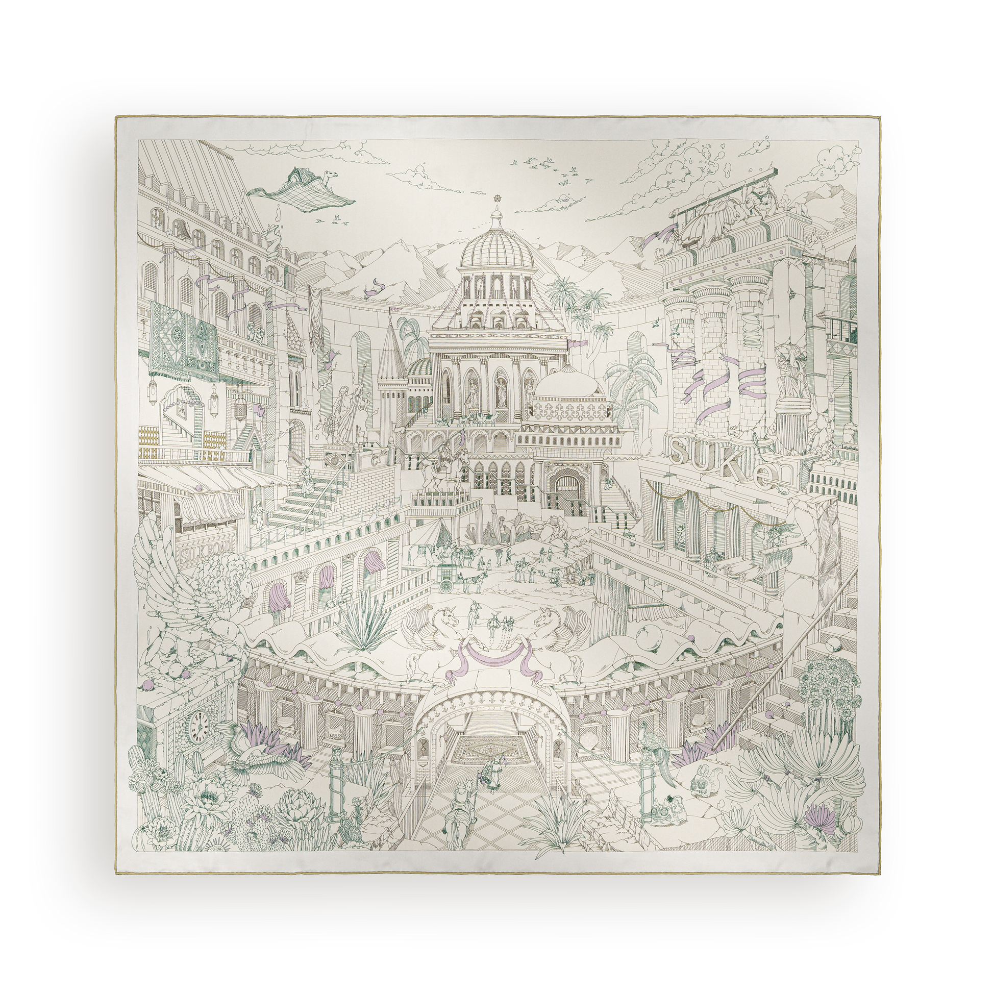 Evoking the magic of the ancient frescoes of Dunhuang, this 100% natural silk scarf celebrates the dialogue between ancient Chinese art and contemporary Parisian elegance.